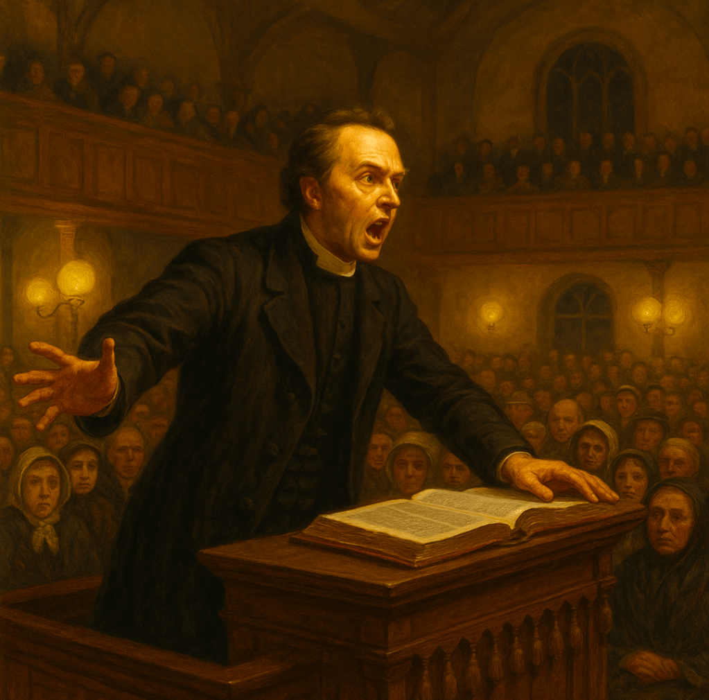 A Sunday sermon was not a polite reading. It was a performance with stakes as high as life and death. Preachers like the one-eyed giant Christmas Evans could silence a quarryman’s cough at the back row. They did not deliver sermons; they inhabited them. They roared, whispered, wept, and brought entire congregations with them.