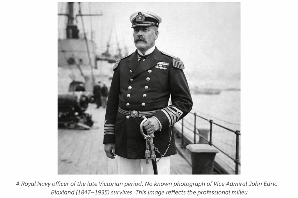 When family history is rooted in place, farming, chapel, and community, the life of a career naval officer can feel almost anomalous, outward-looking, mobile, and shaped by the machinery of empire rather than the rhythms of locality. John Edric Blaxland was precisely that figure, a professional Royal Navy officer whose service carried him into the diplomatic flashpoints and coercive campaigns of late Victorian Britain, and whose later senior appointments placed him within the Navy’s administrative and strategic infrastructure.
